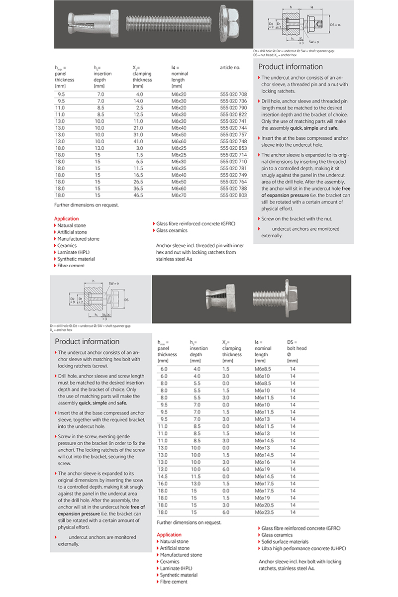 특정 용어 및 제품 오퍼링은 제조업체마다 다를 수 있습니다. 다른 유형의 "나사 인 언더 컷 앵커"를 언급하는 경우 혼란에 대해 사과드립니다. 자세한 내용이나 설명을 제공하는 것이 도움이 될 것입니다 .