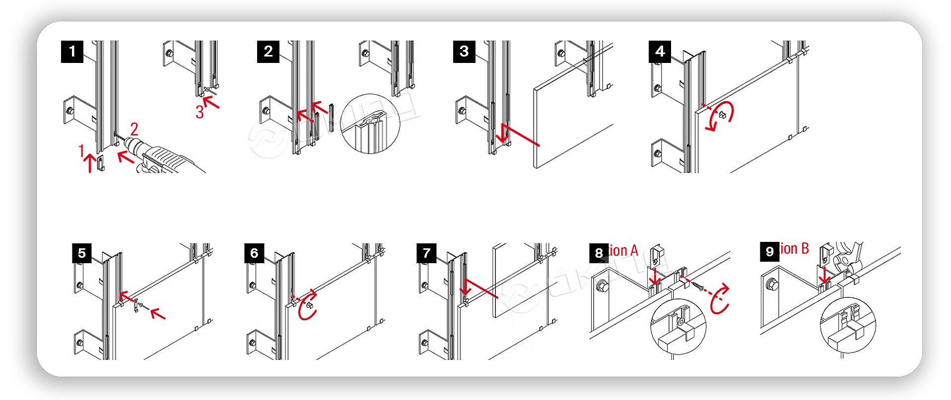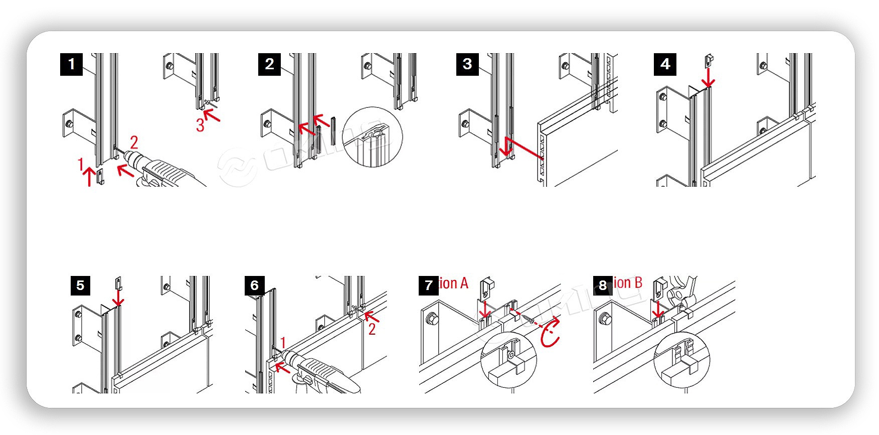 테라코타 패널의 패널 가장자리에 삽입된 클램프를 통해 조인트를 고정합니다.